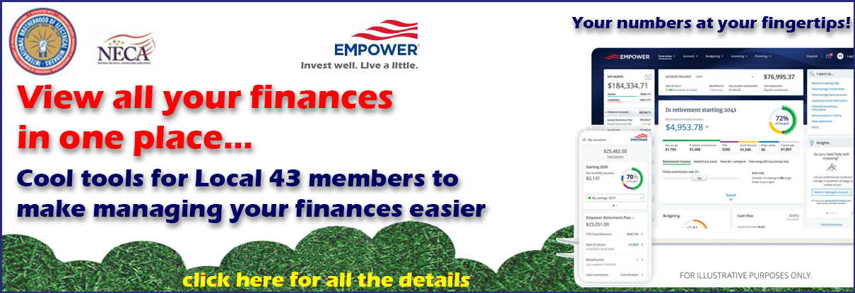 Annuity Fund – Participants: We are pleased to present you with this revised booklet summarizing key features of your Local 43 Annuity Plan. In addition to retirement, the Fund provides benefits in the event of death, disability, or separation from the electrical industry. Loans and Hardship Withdrawals may be available for specific needs such as college education or the purchase of a home. Because this summary cannot cover every detail of the Plan provisions, we encourage you to carefully review the full Plan document to understand your rights and responsibilities listed within. If you have questions, please contact the Annuity Fund Office at 315-474-5729.